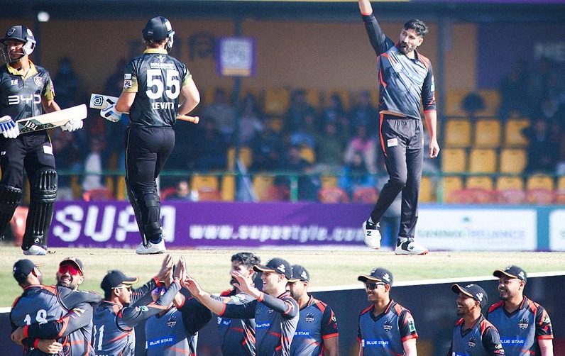 जनकपुरका लागि ललित राजवंशी,जिमी निसम र मोहम्मद मोहसिनले समान दुई, हर्ष ठाकर, शेर मल्लले एक एक विकेट लिए।