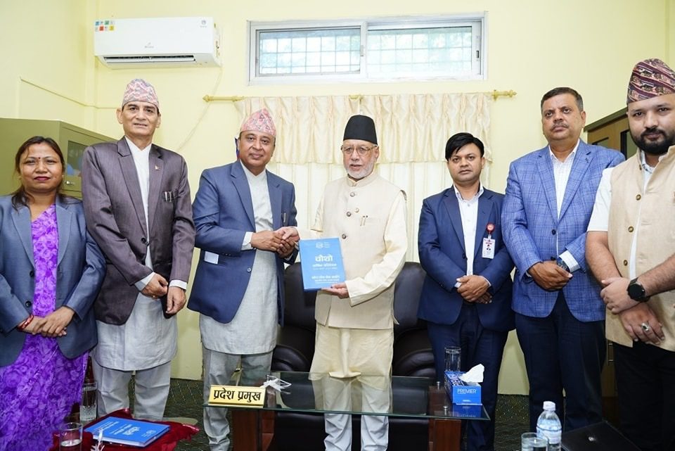 आयोगका अध्यक्ष यज्ञराज बोहरा, सदस्यहरू लक्ष्मण बहादुर खड्का र भागरथी रानासहितको टोलीले प्रदेश प्रमुख मियाँलाई आर्थिक वर्ष २०८०\०८१ चौथो वार्षिक प्रतिवेदन पेश गरेको हो ।