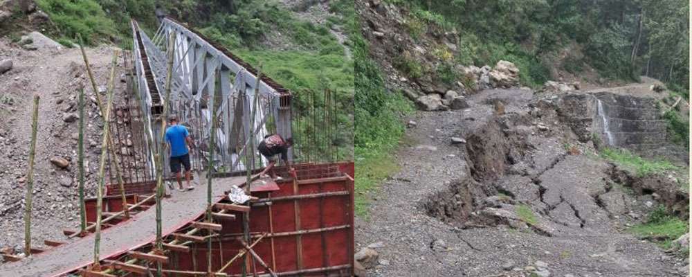 बाजुरामा सडक अवरुद्ध हुँदा पुल निर्माण ठप्प