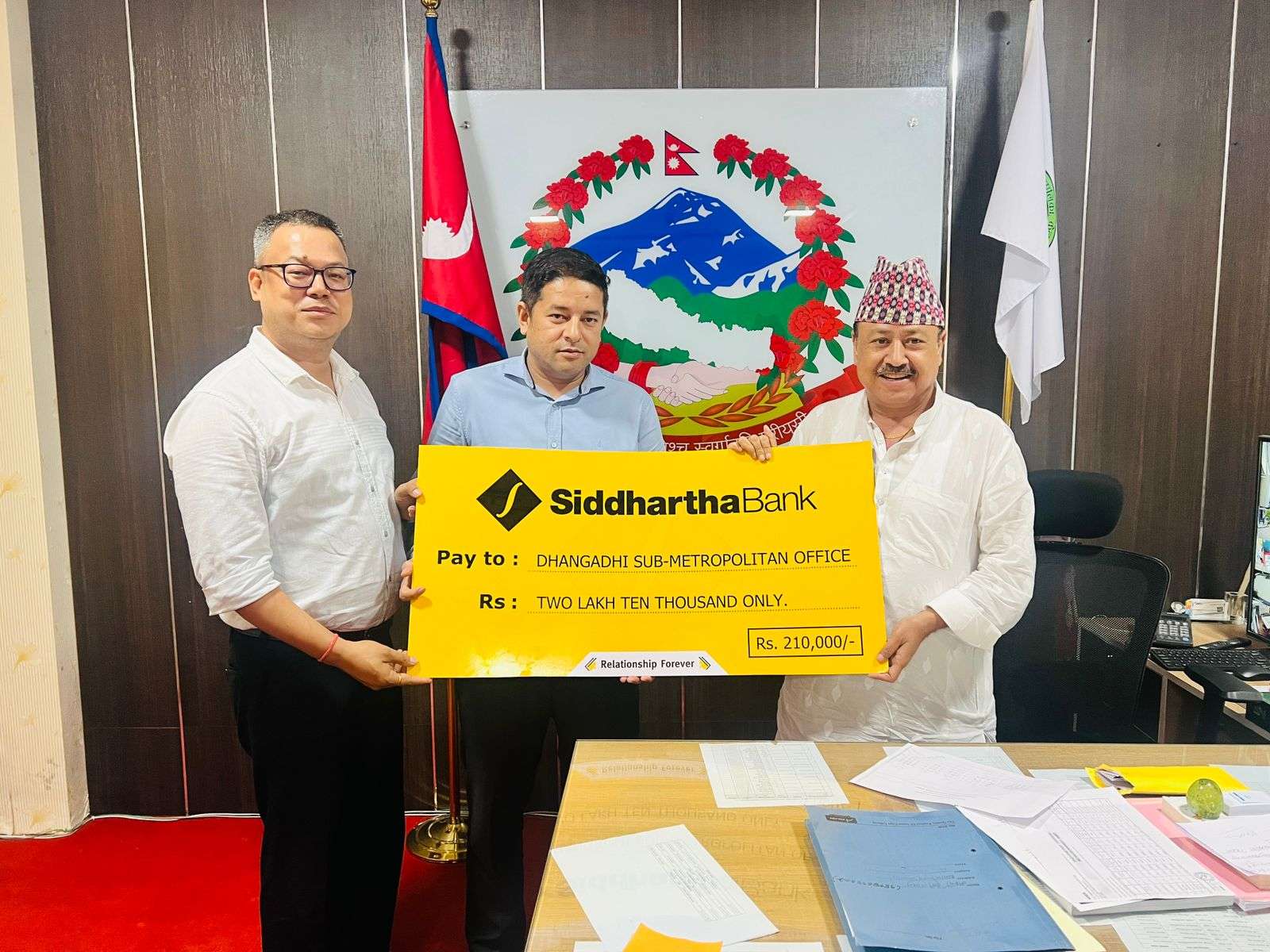 सिद्धार्थ बैंकद्वारा धनगढी उपमहानगरलाई २ लाख दस हजार सहयोग